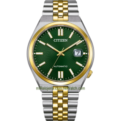 Self-winding mechanical movement. Double date feature at the 3 o\'clock hour. Screw Caseback with crystal. Mineral crystal.