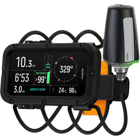 The new and most complete Suunto console-type dive computer with GPS, AMOLED display and rechargeable battery with 120h duration.
