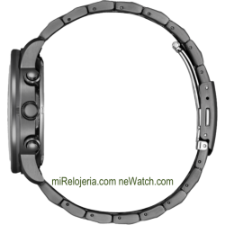 Movimiento de cuarzo Eco-Drive. Calendario, cronógrafo, cristal mineral. Caja y pulsera de acero black.