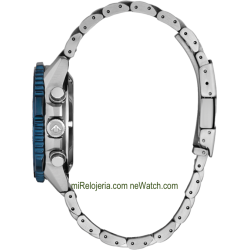 Movimiento de cuarzo Eco Drive sin cambio de pila, calendario, cristal zafiro, caja y pulsera de acero con cierre de doble pulsador.