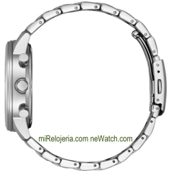 Movimiento de cuarzo Eco-Drive sin cambio de pila. Calendario, cronógrafo, cristal mineral. Caja y pulsera de acero.