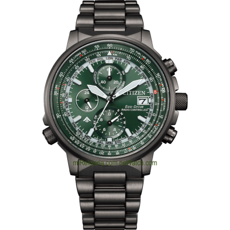 Movimiento de cuarzo Eco Drive H800 Radio controlado. Reserva de carga de 6 meses. Ecológico sin necesidad de cambio de batería.