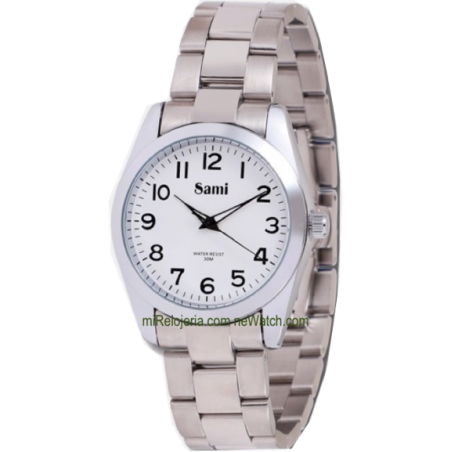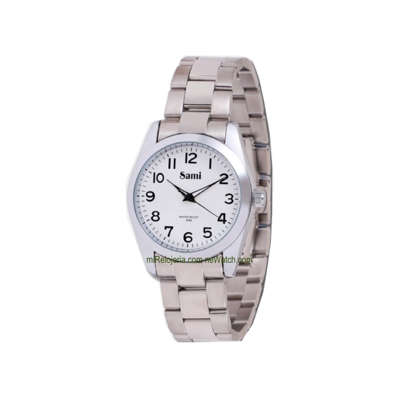 Movimiento de cuarzo MIYOTA, calendario, caja de metal y pulsera de acero dorado.