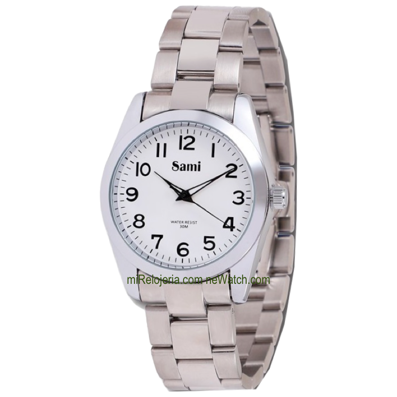 Movimiento de cuarzo MIYOTA, calendario, caja de metal y pulsera de acero.
