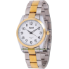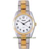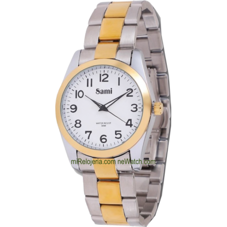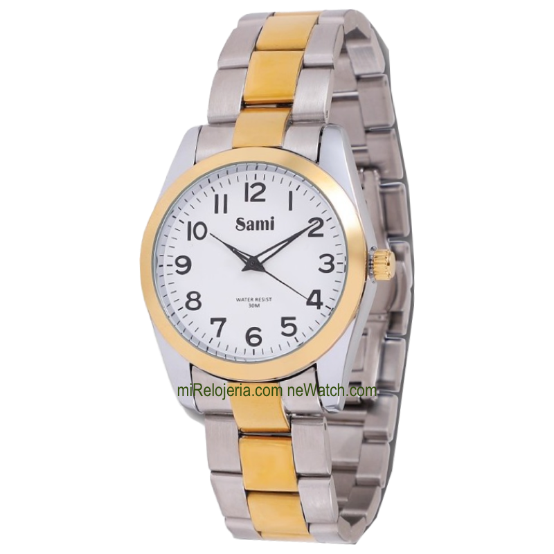 Movimiento de cuarzo MIYOTA, caja de metal y pulsera de acero bicolor.