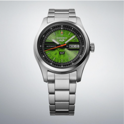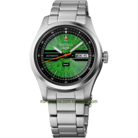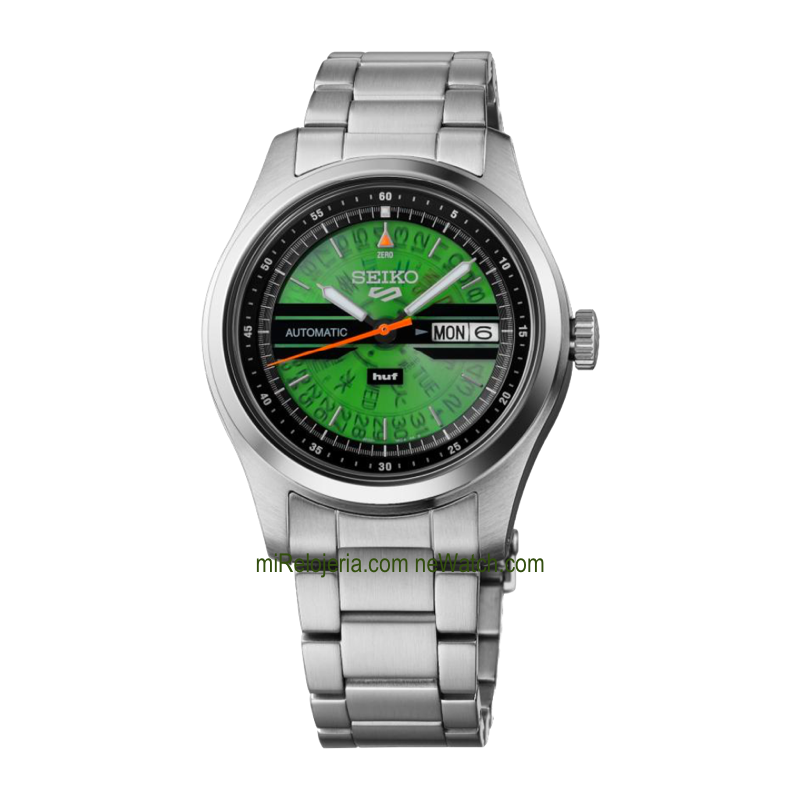 Basado en la serie Seiko 5 Sports Field con un color "HUF Green".