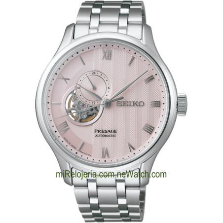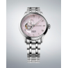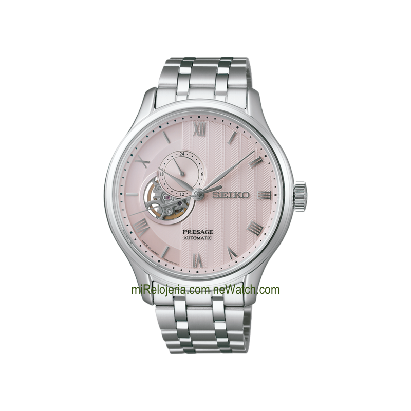 Movimiento mecánico automático (carga con el movimiento de la mano), con maquinaria a la vista y cristal de zafiro.