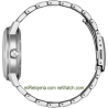Movimiento mecánico automático, calendario, fondo y corona a rosca. Cristal Mineral. Caja y pulsera de acero.