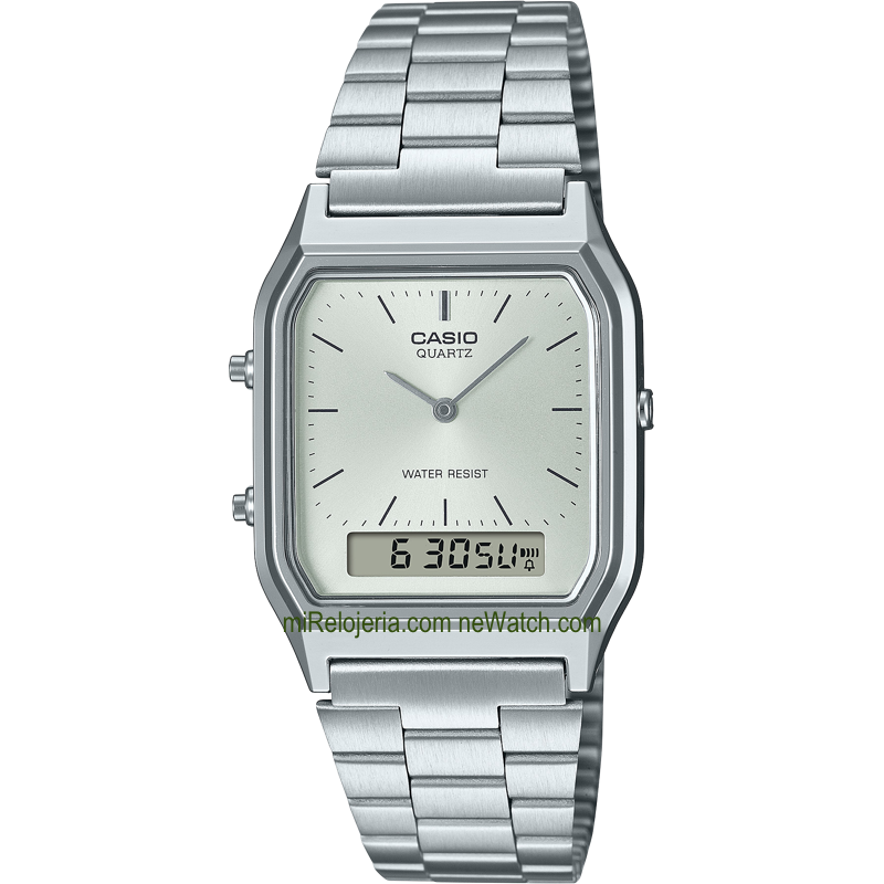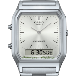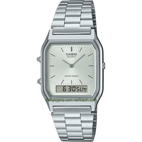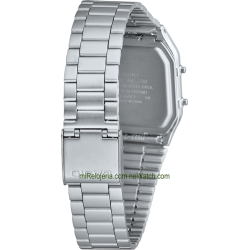 Movimiento de cuarzo Ana-Digi. Cronómetro, alarm, y calendario automático. Caja de resina y pulsera de acero.